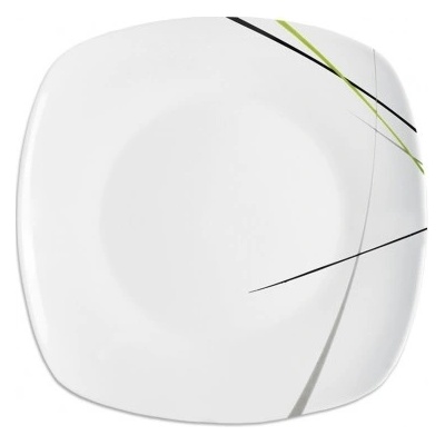 Hranatý tanier bielej farby na zákusky, dezerty aj múčniky. Má rozmer 18,5×18,5 cm a je vyrobený z kvalitného porcelánu. Kraj taniera zdobí čierno-zelený dekor v podobe...