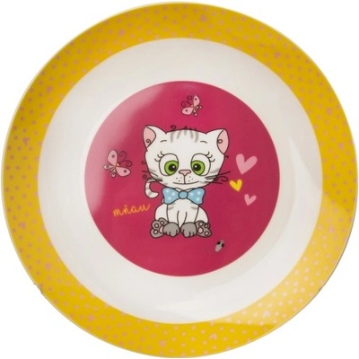 Porcelánový plytký tanier s motívom mačičky s mašľou, s priemerom 21 cm, vhodný na servírovanie hlavného jedla i desiaty Plytký tanierik pre malých jedákov, ktorý ich poteší...