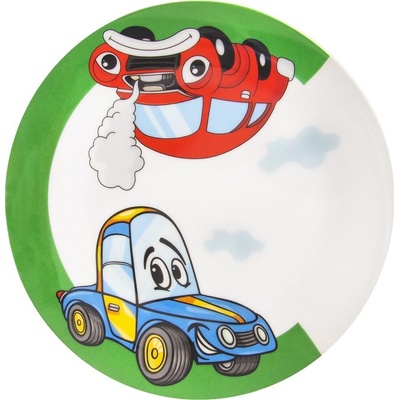 Porcelánový plytký tanier s motívom autíčok, s priemerom 21 cm, vhodný na servírovanie polievky, hlavného jedla i desiaty Plytký tanierik pre malých motoristov, ktorý ich...
